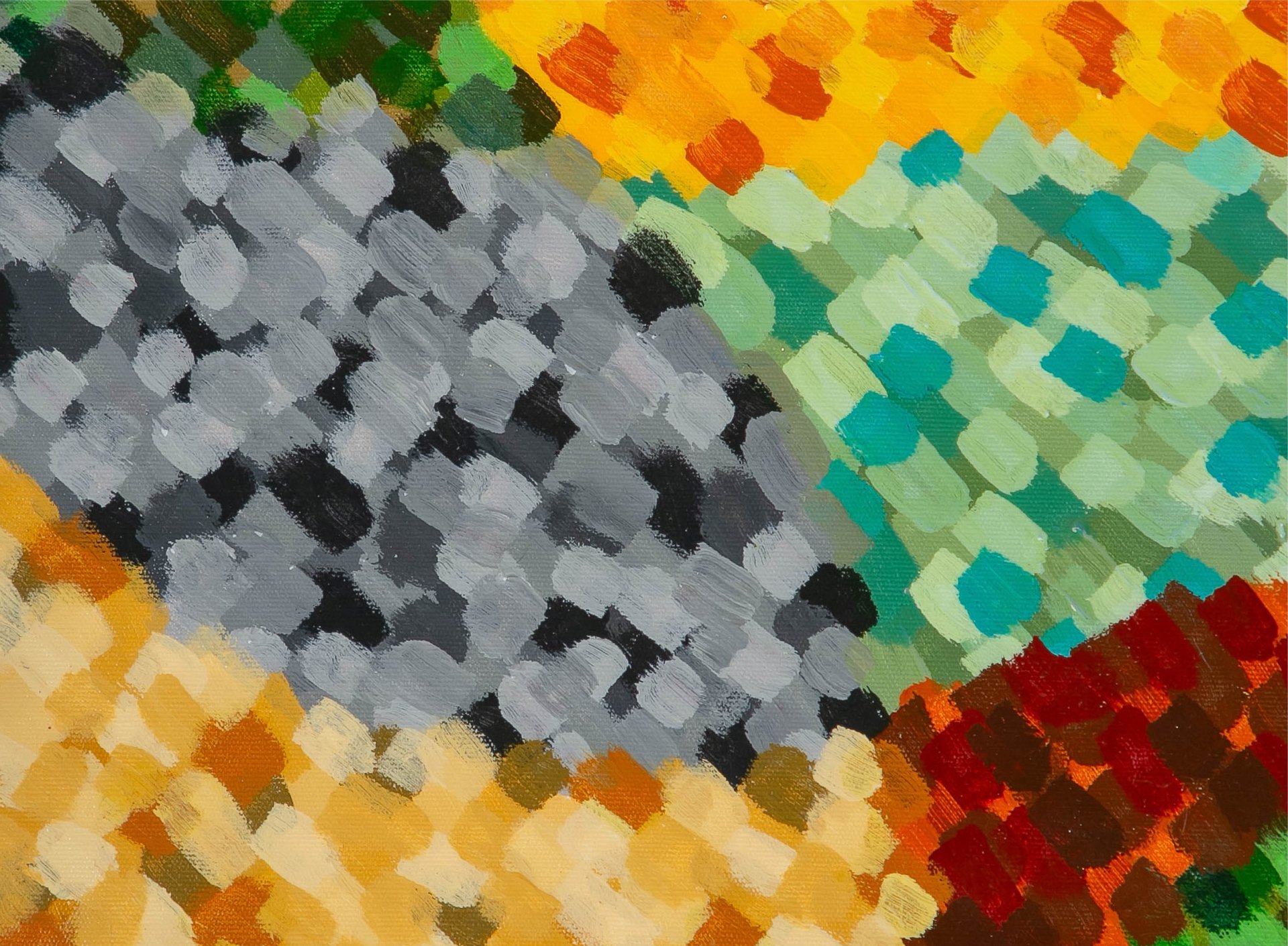As obras selecionadas apresentam um reflexo das minhas pesquisas. Temos uma arte têxtil, uma pintura da série Alquimia do absurdo e minha dissertação de mestrado