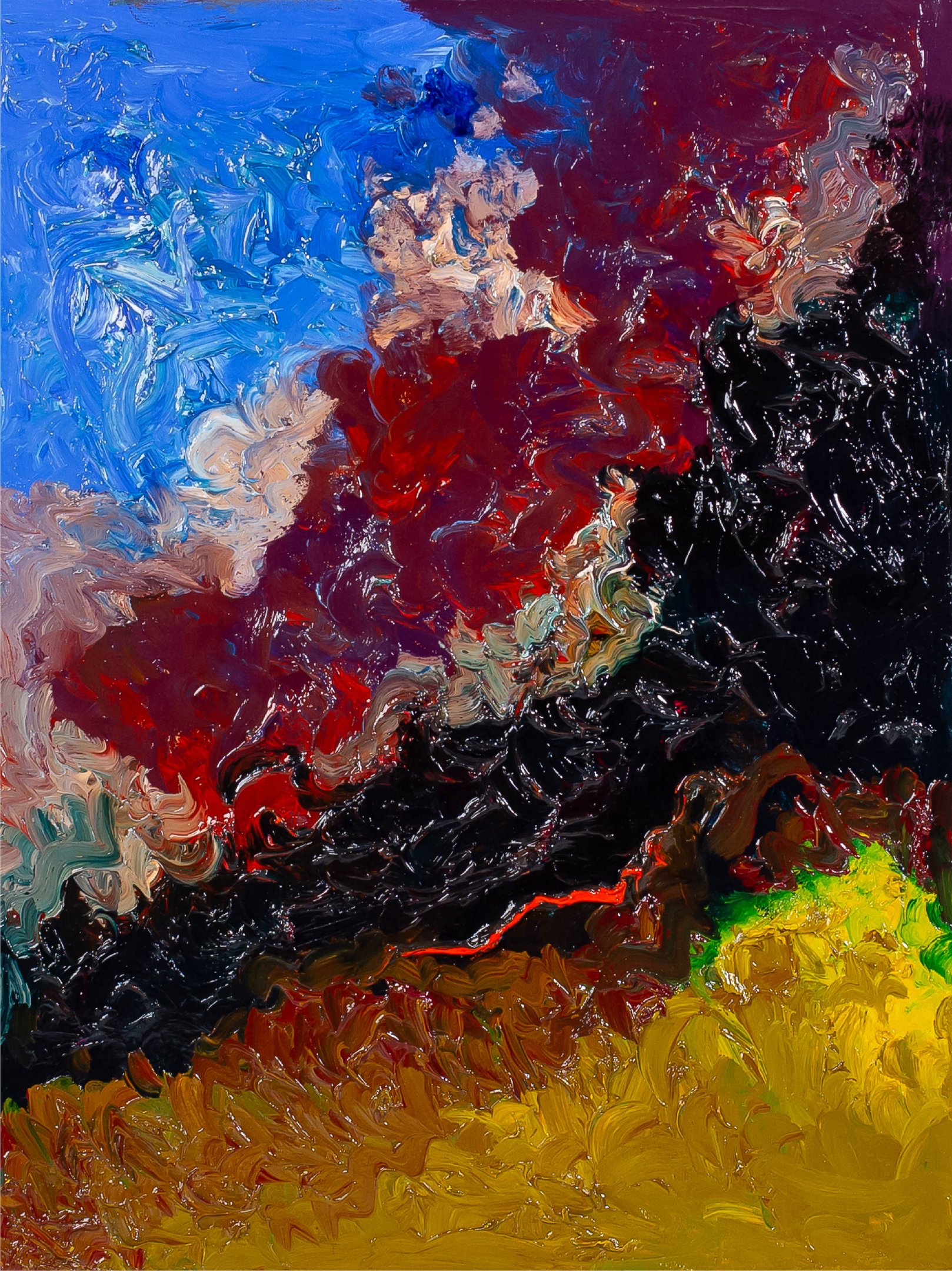 A vida, a morte e a transcendência pelas chamas. A obra é resultado de pesquisas sobre o fogo natural no bioma Cerrado (um dos mais desmatados do Brasil) e como esse elemento é fundamental no processo de decomposição e renascimento da vegetação autóctone. As cores e as formas são interpretações do fogo-fátuo a partir dos estudos químicos em diálogo com histórias advindas da cultura popular dos povos que habitam o planalto central brasileiro, onde está situada a capital nacional Brasília.